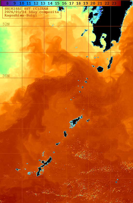 この画像は宇宙航空研究開発機構(JAXA)で受信したしきさい(GCOM-C)データを処理したものです。