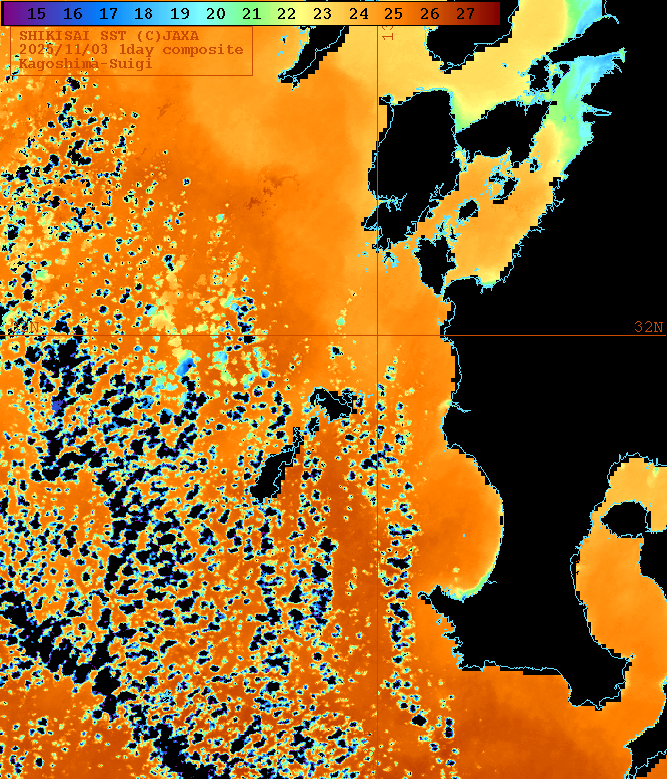 この画像は宇宙航空研究開発機構(JAXA)で受信したしきさい(GCOM-C)データを処理したものです。