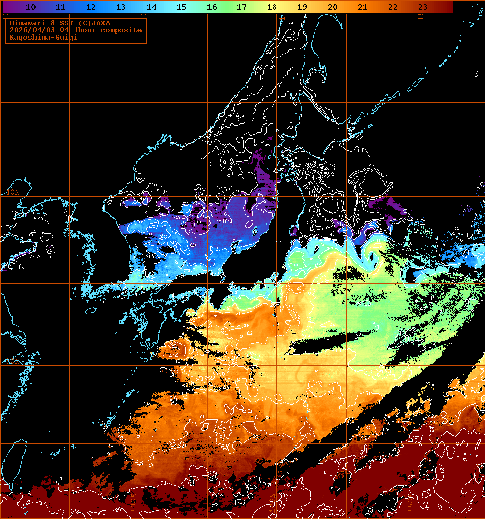 本画像作成の入力に使用したひまわり8号海面水温は、宇宙航空研究開発機構(JAXA)の分野横断型プロダクト提供サービス(P-Tree)より提供を受けました。