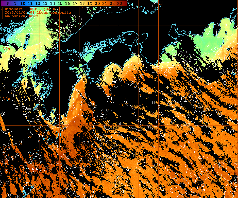 本画像作成の入力に使用したひまわり8号海面水温は、宇宙航空研究開発機構(JAXA)の分野横断型プロダクト提供サービス(P-Tree)より提供を受けました。