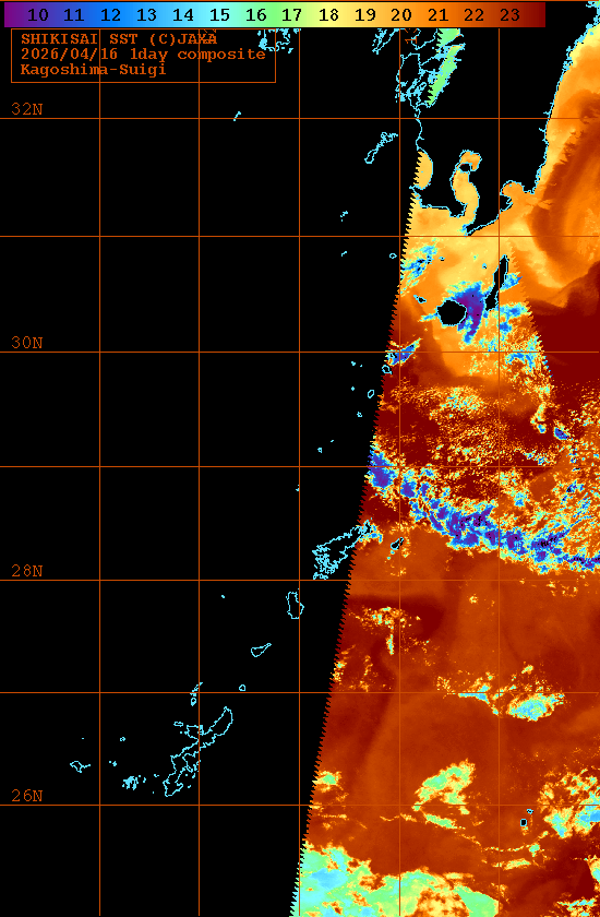 この画像は宇宙航空研究開発機構(JAXA)で受信したしきさい(GCOM-C)データを処理したものです。