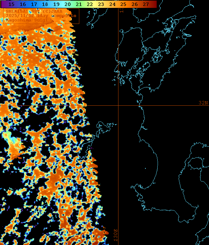 この画像は宇宙航空研究開発機構(JAXA)で受信したしきさい(GCOM-C)データを処理したものです。