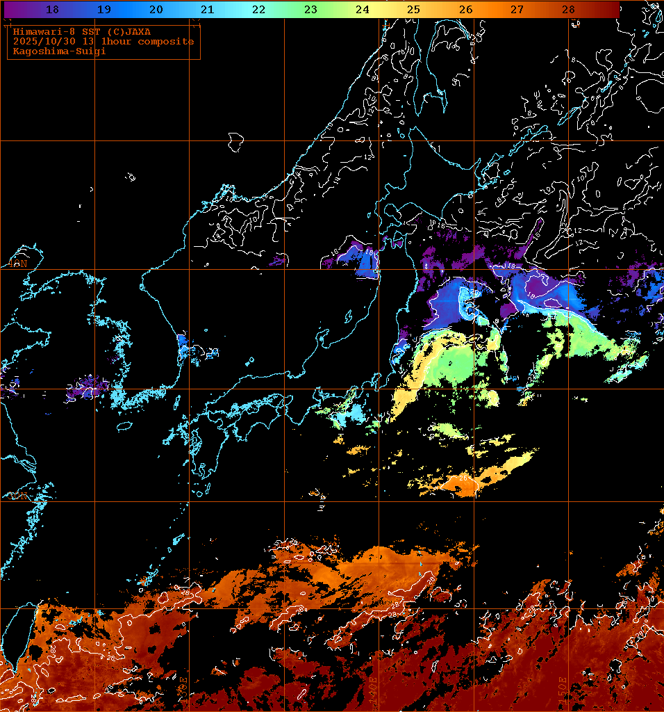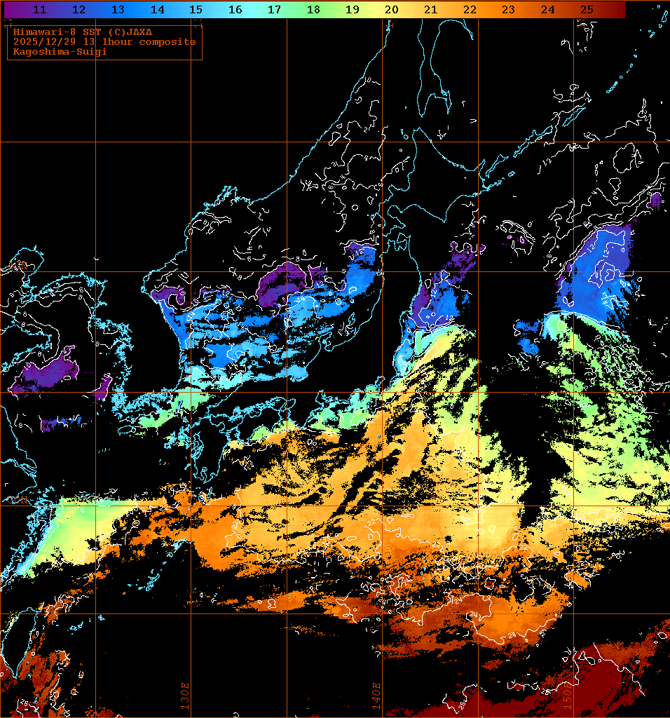 本画像作成の入力に使用したひまわり8号海面水温は、宇宙航空研究開発機構(JAXA)の分野横断型プロダクト提供サービス(P-Tree)より提供を受けました。